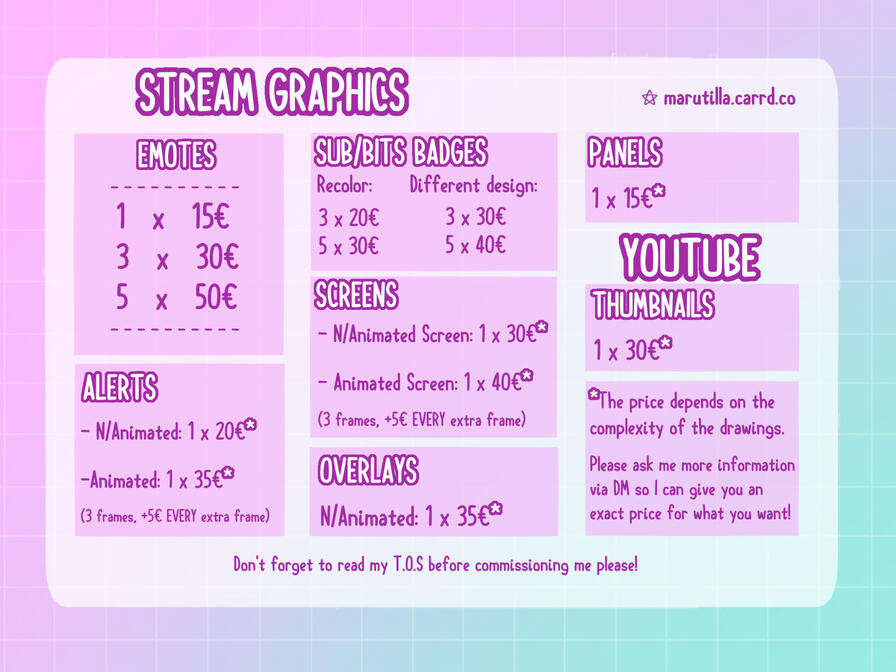 Please check my portfolio to see examples of my art!